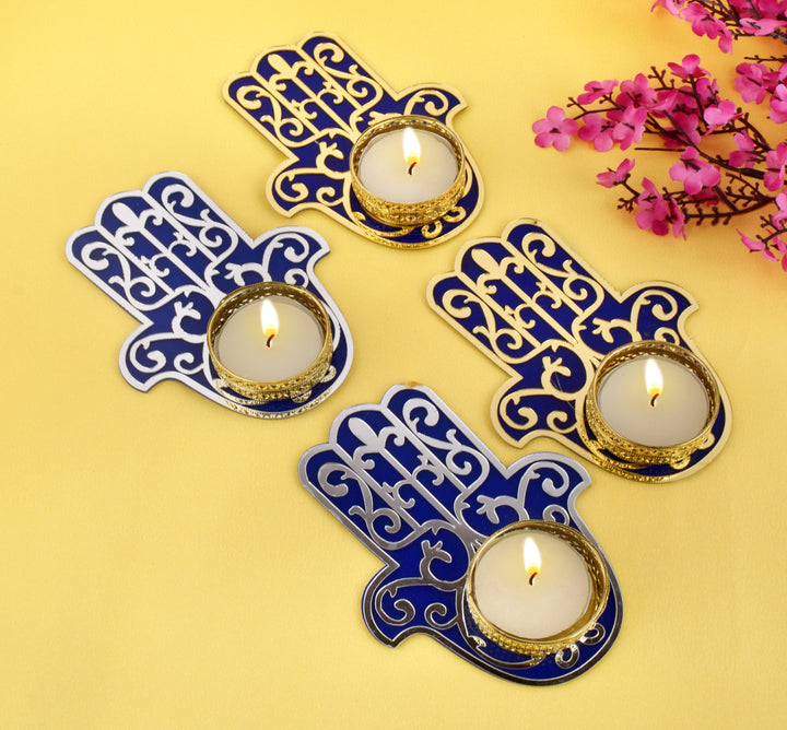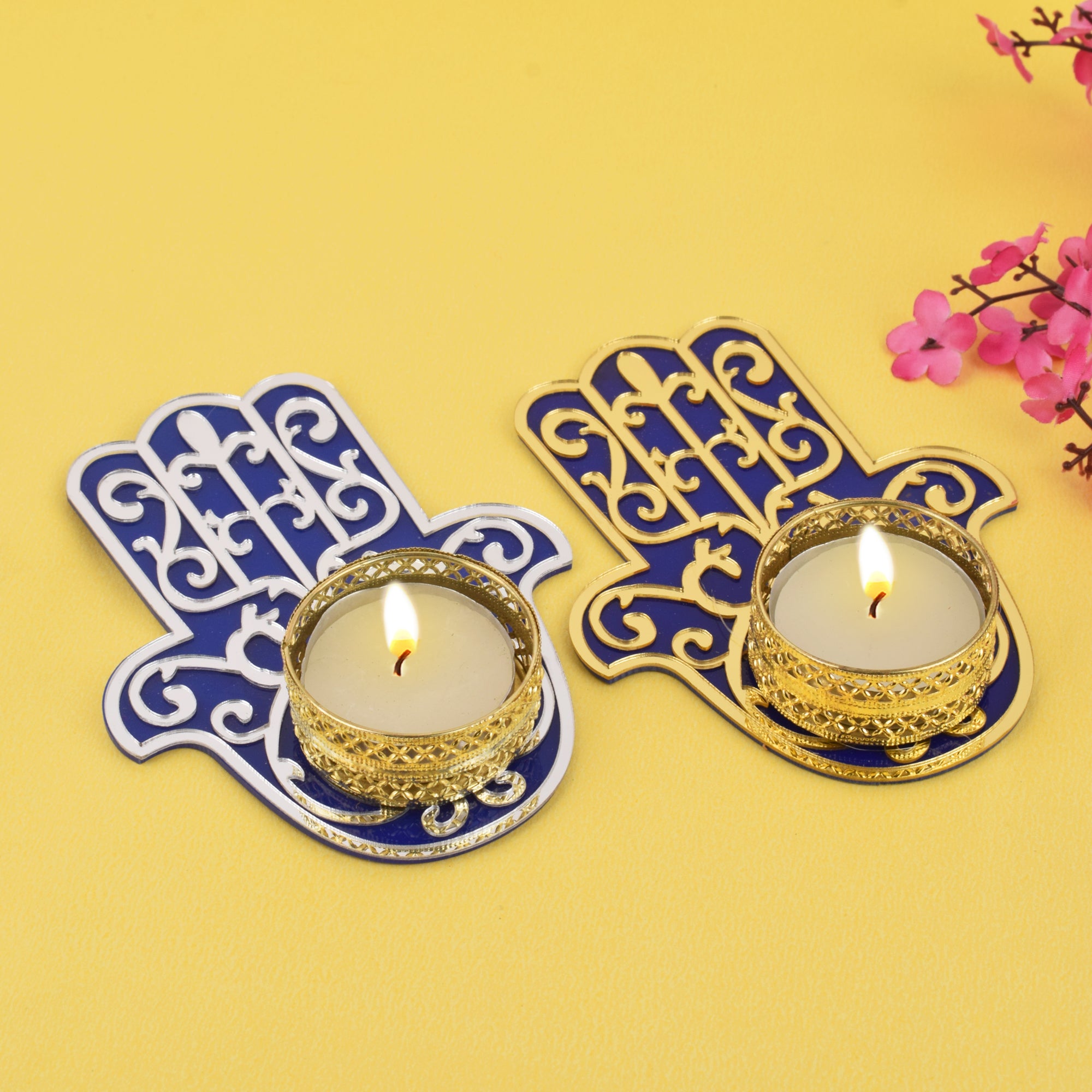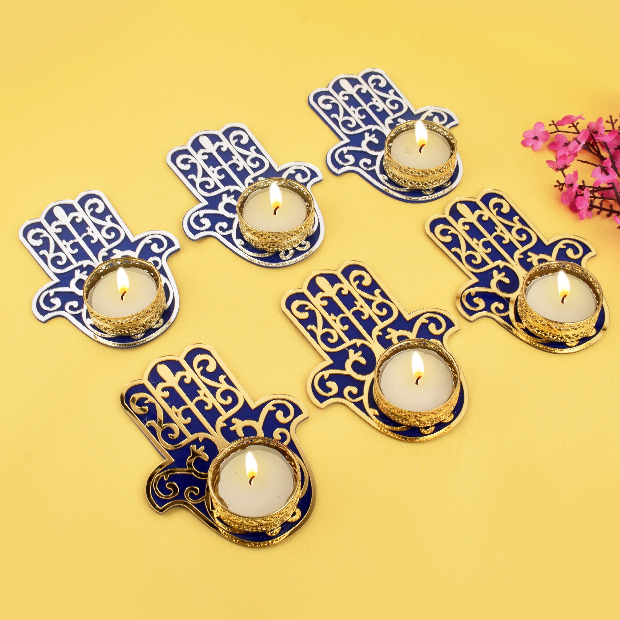 Hamsa Hand Evil Eye Tea Light Candle Holder with Tealight (Big) – satvikstore.in