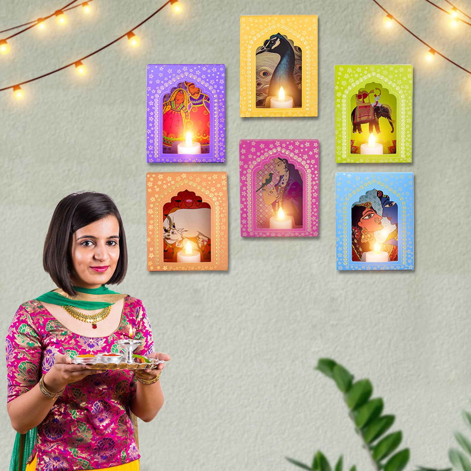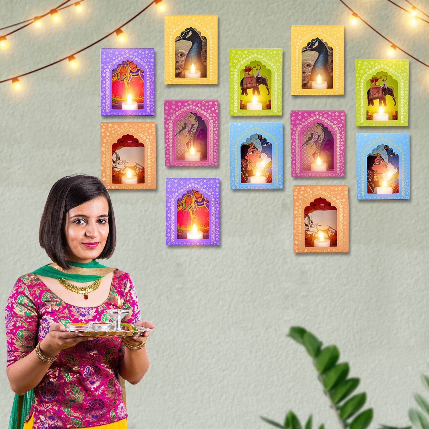 LED Deep Mala Diwali Decorations with LED Candles: Traditional Hanging Jharokha Boxes