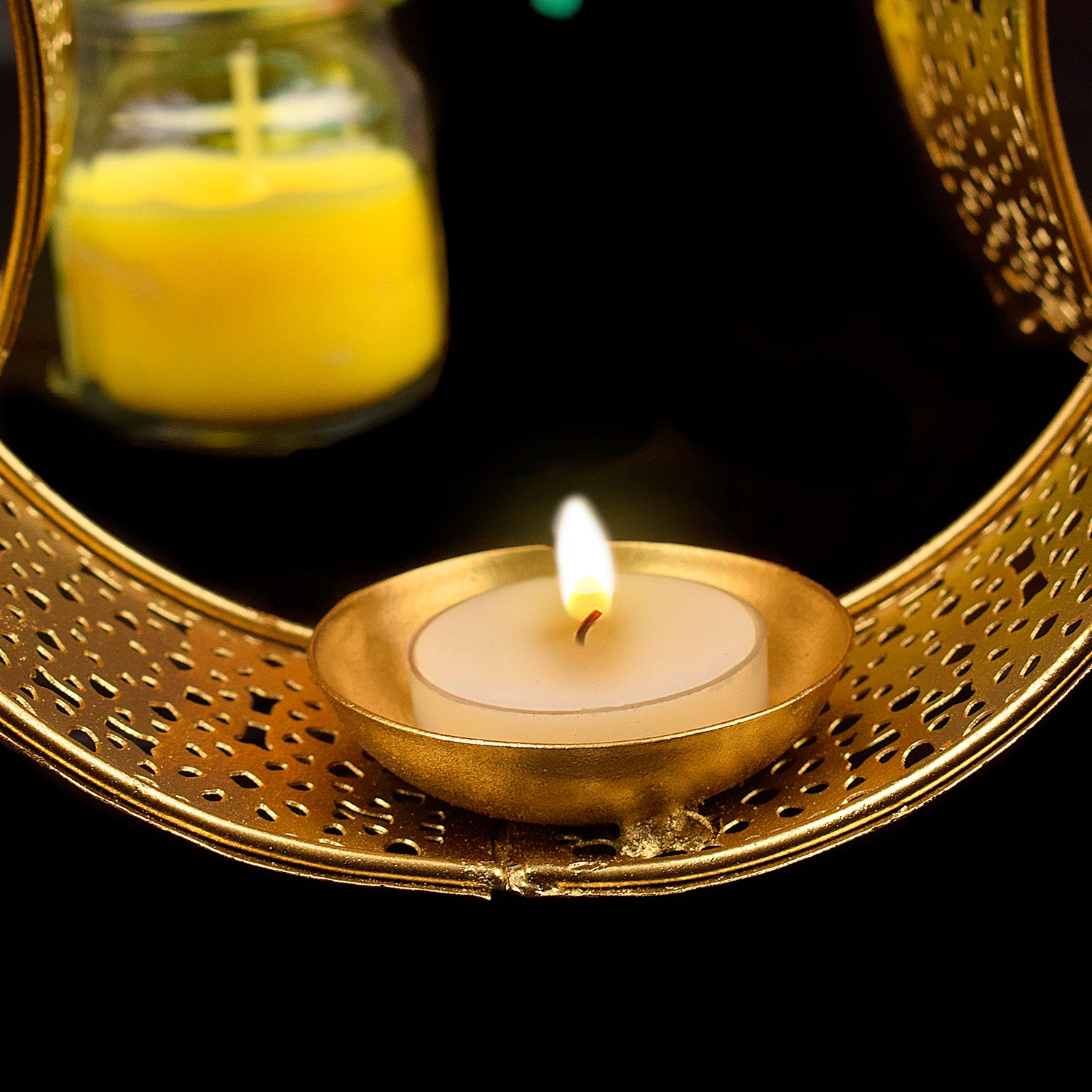 • Item Name: Beautifully Engraved Metal Round Tea Light Candle Holder.