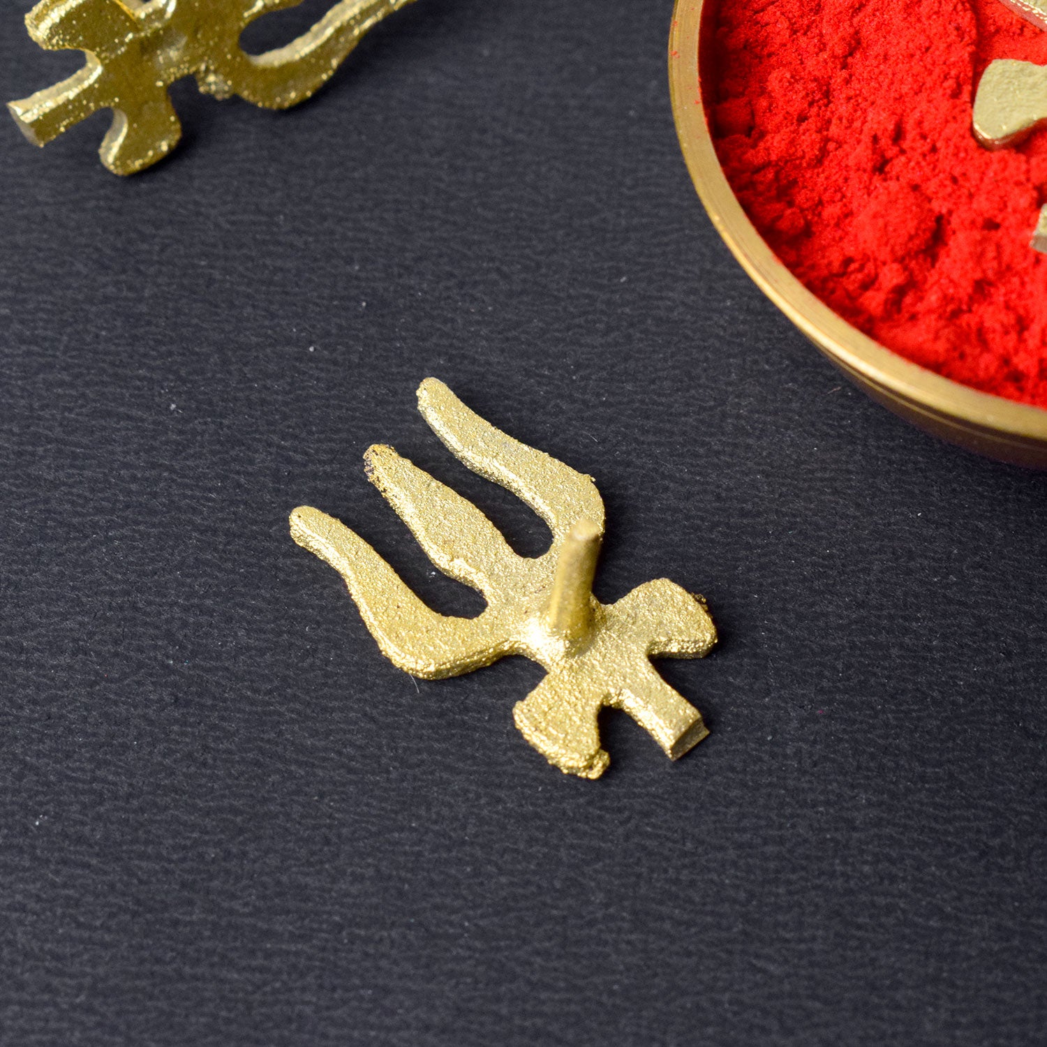 Buy Online | Brass Trishul with Damru Tilak Stamp | Satvikstore.in – satvikstore.in
