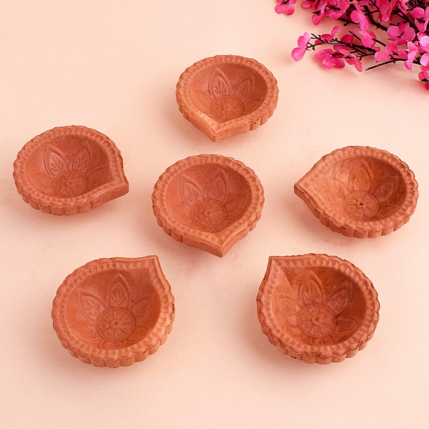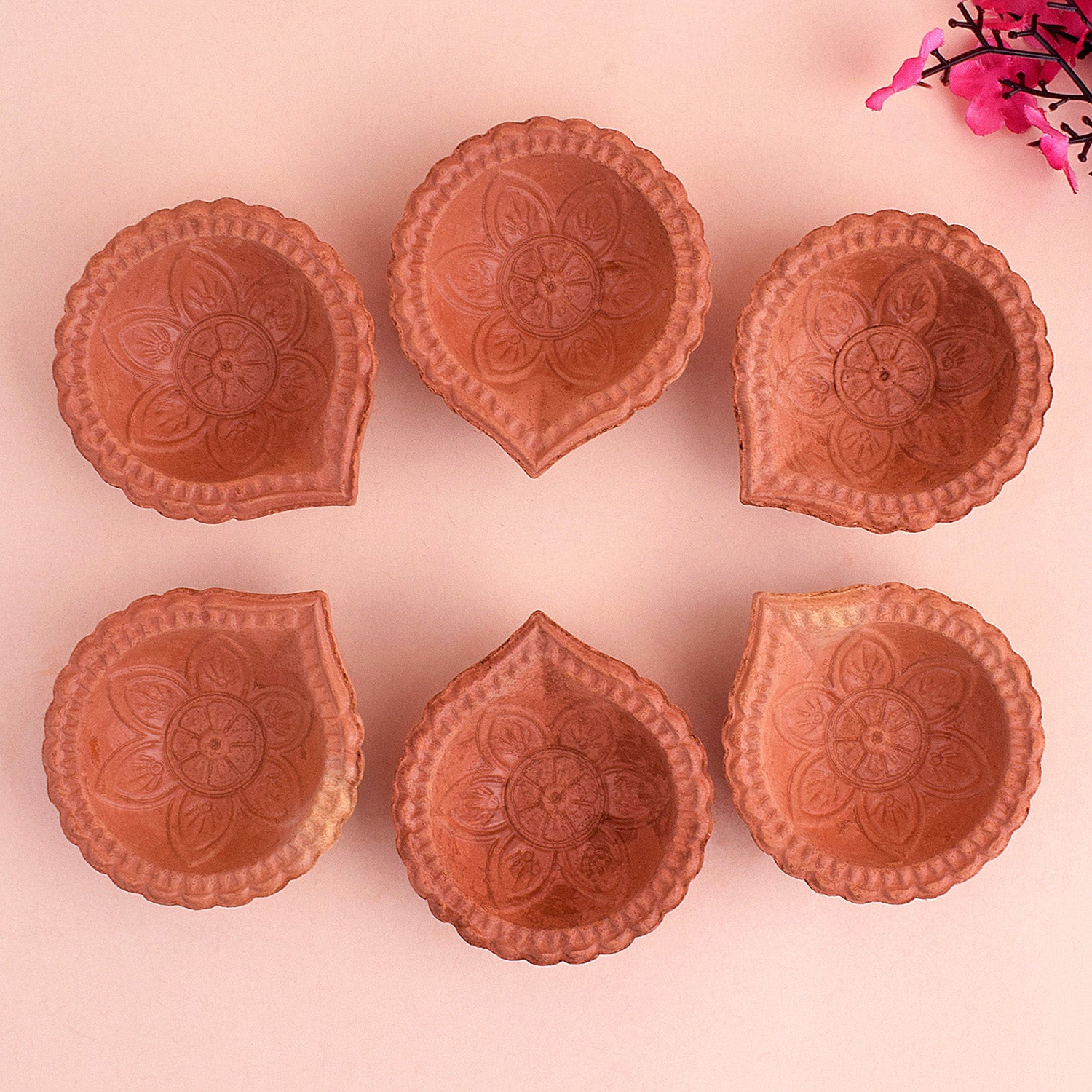 Glowing Gardens Crafting Flower Brown Clay Diyas | Satvikstore.in – satvikstore.in
