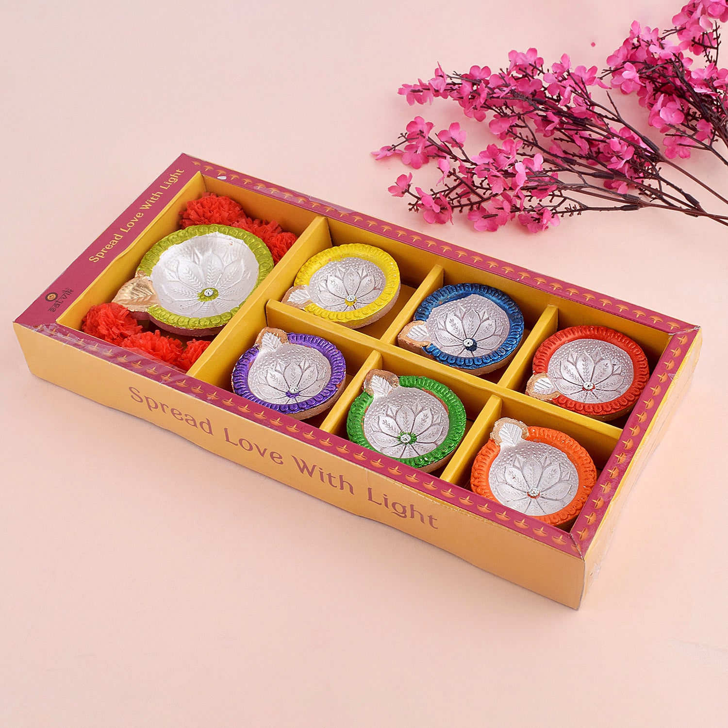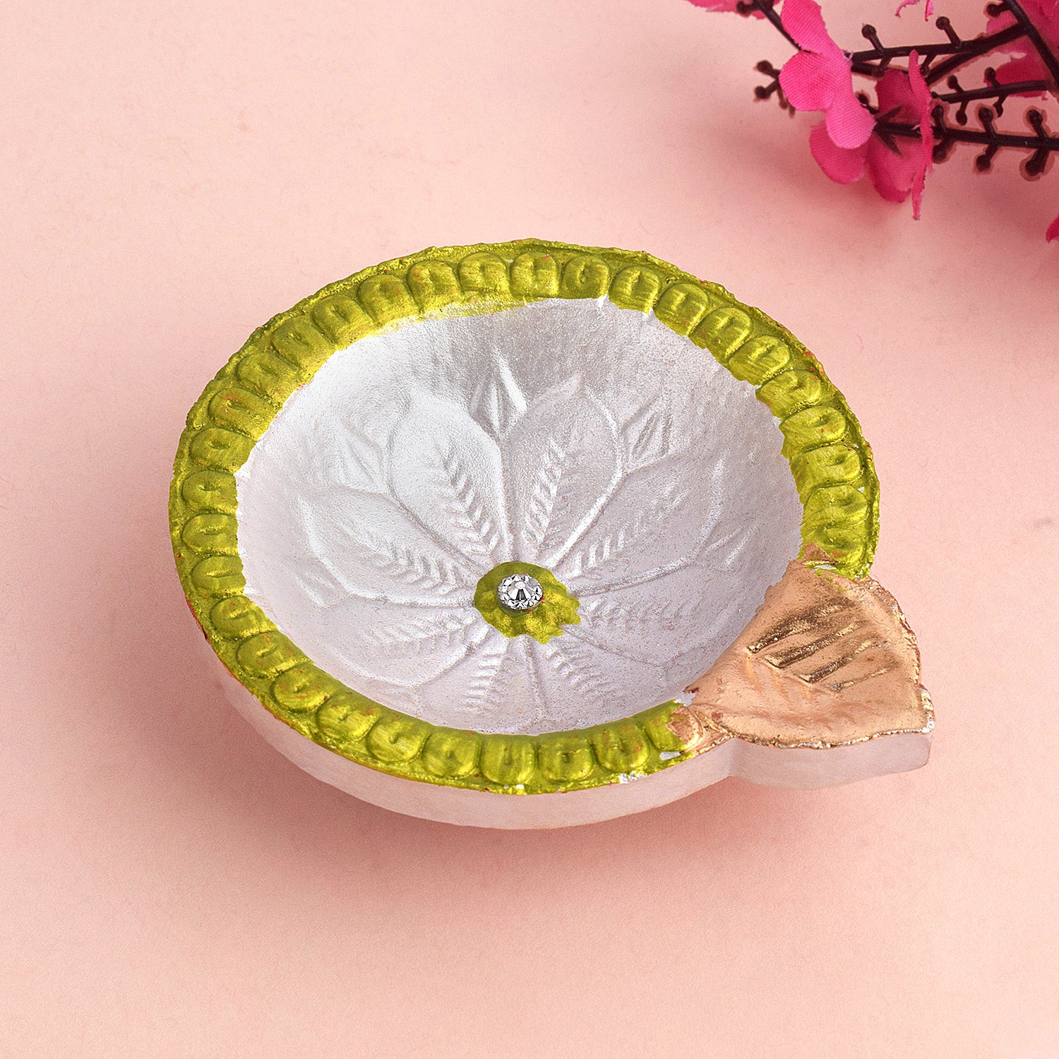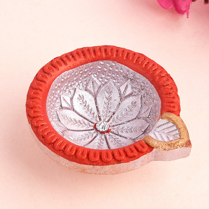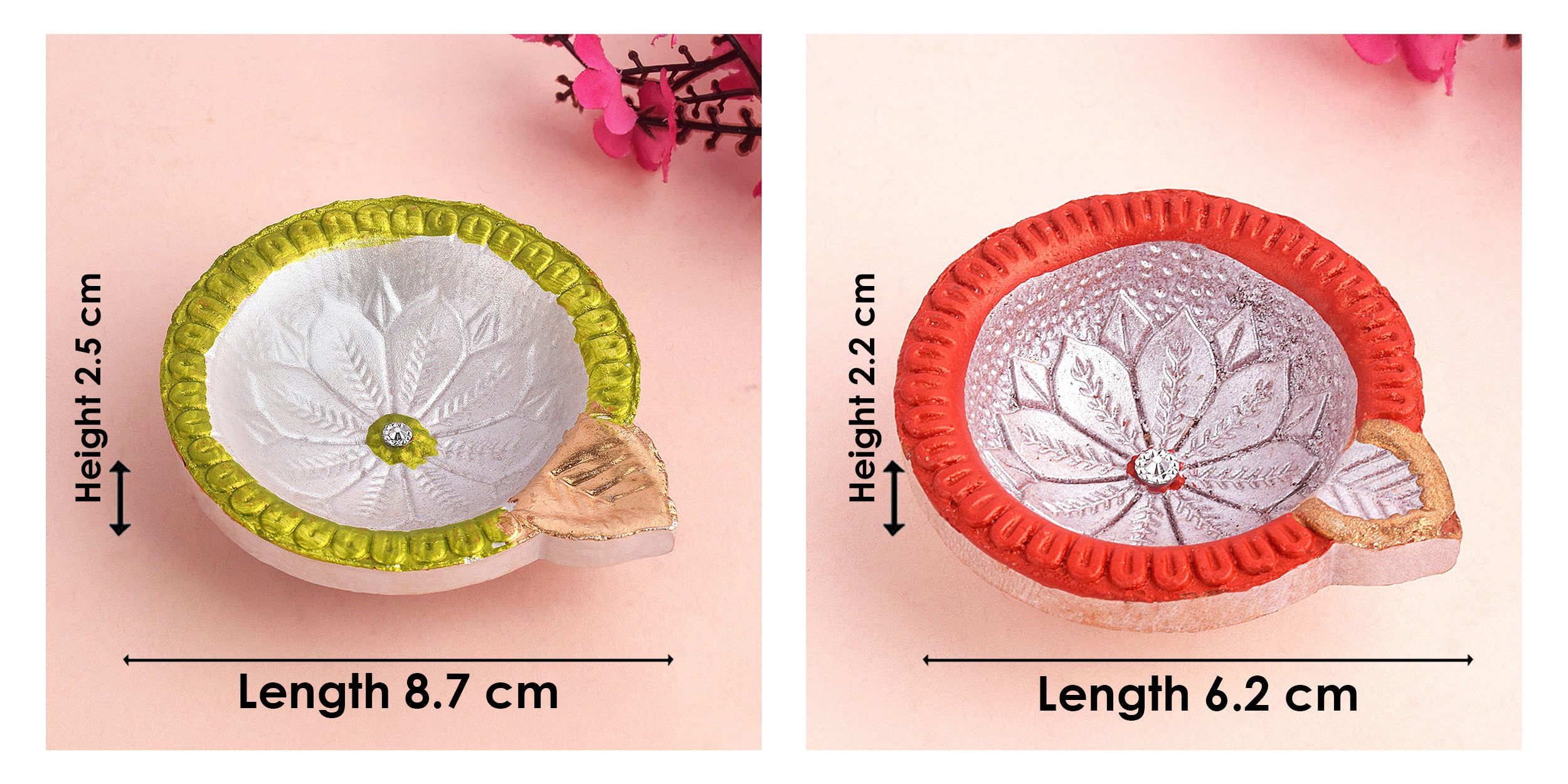 • Product Details: Material: Clay/Terracotta Dimensions: Regular Diya Height: 2.2cm, Length: 6.2cm, Large Diya Height: 2.5cm, Length: 8.7cm,Β Weight: 700gram, Finish Type: Glossy.