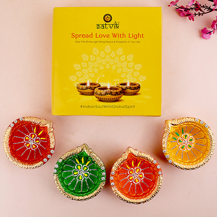 Buy Vibrant Clay Diyas: A Kaleidoscope of Colors | Satvikstore.in – satvikstore.in