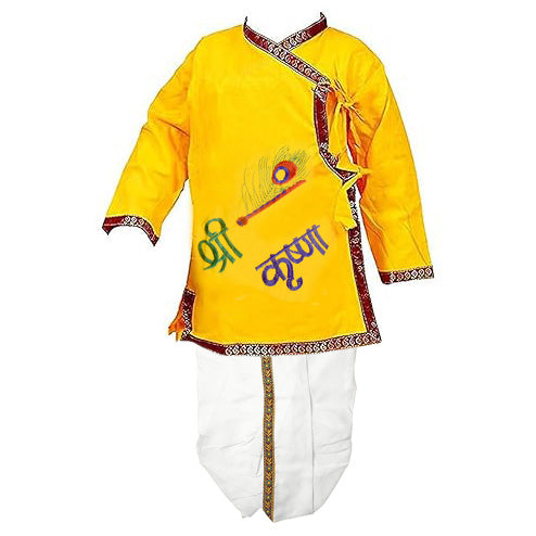 • Item Name: Krishana Outfit Yellow Kurta with White Dhoti for Janmasthmi Size (14)