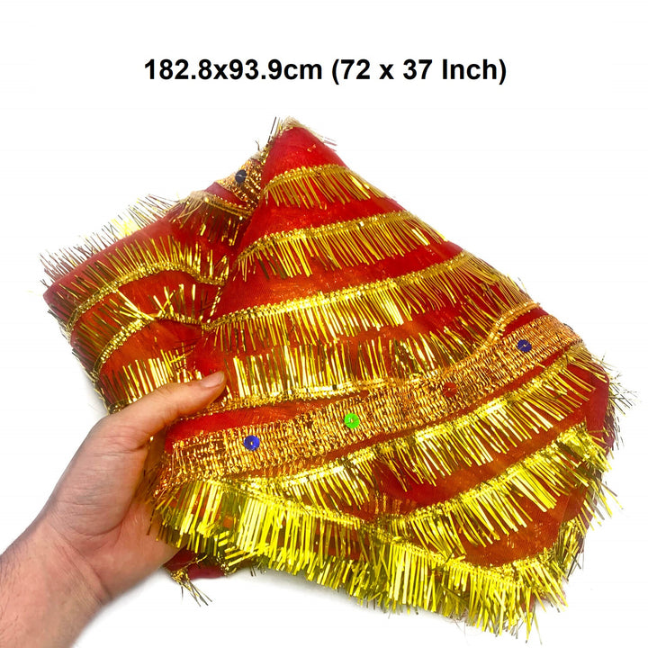 Satvik's Mata ki chunri, traditional red net fabric for all hindu goddess, Indian traditional fabric for puja,180.34 x 111.76cm (71 x 44 inch) mata ki chunni, Online pooja Accessories Store Durga MAA Chunni Chunari Chunri.