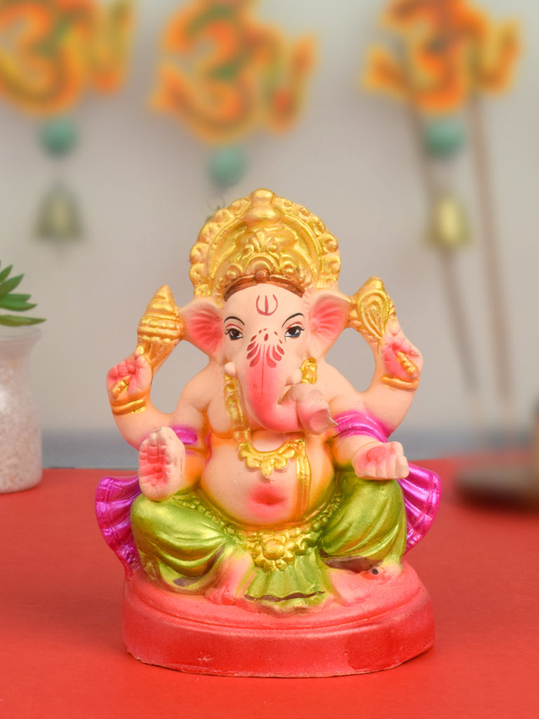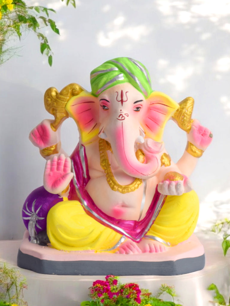 Eco-Friendly Ganesha statues are made of 100% biodegradable and eco-friendly material by using Shadu Mati Clay Mitti, which dissolves easily in water. The colours used are also natural, and they decompose and dissolve in water easily. Although they have been made all across India, West Bengal and Maharashtra often employ skilled artisans to make them.