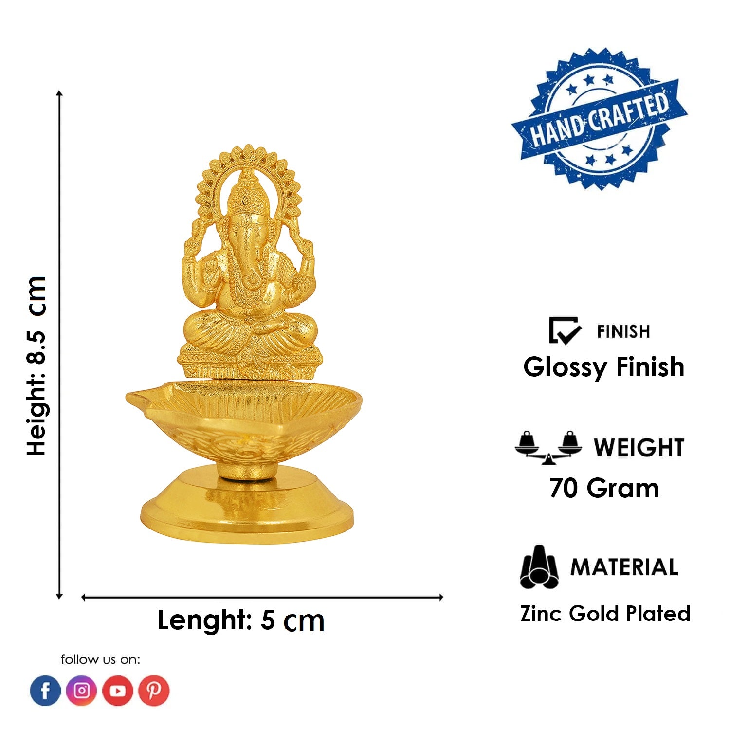 • Item Name: 1 Pc Lord Ganesha Metal Diya