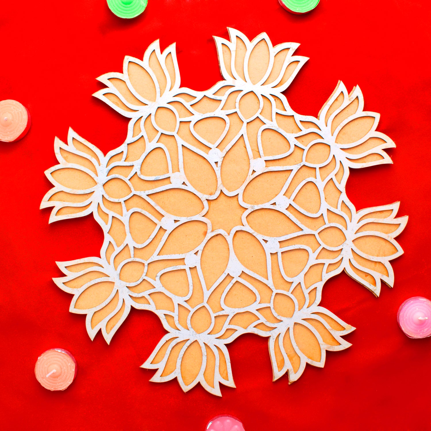 1 PCS Reusable MDF Elegant Rangoli Creations with Wooden Mats