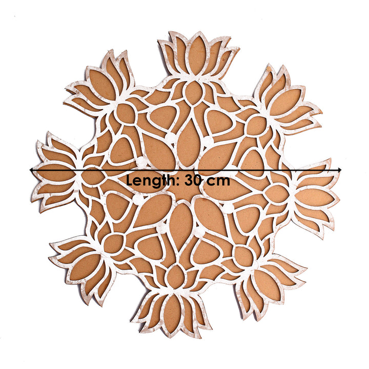 Package Contents :Β 1 PCS Reusable MDF Elegant Rangoli Creations with Wooden MatsΒ Flower Design