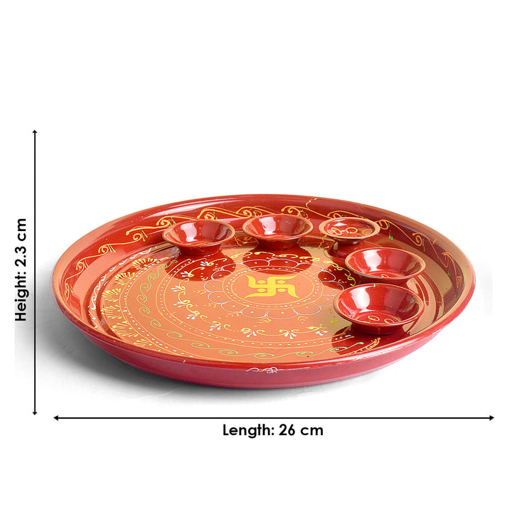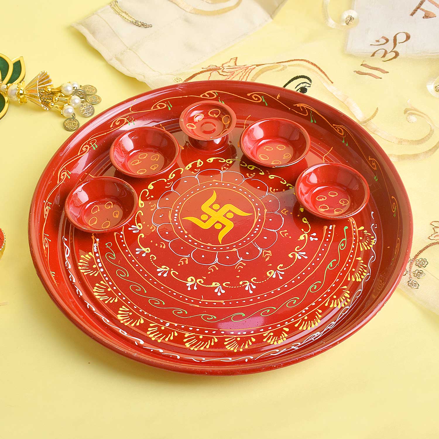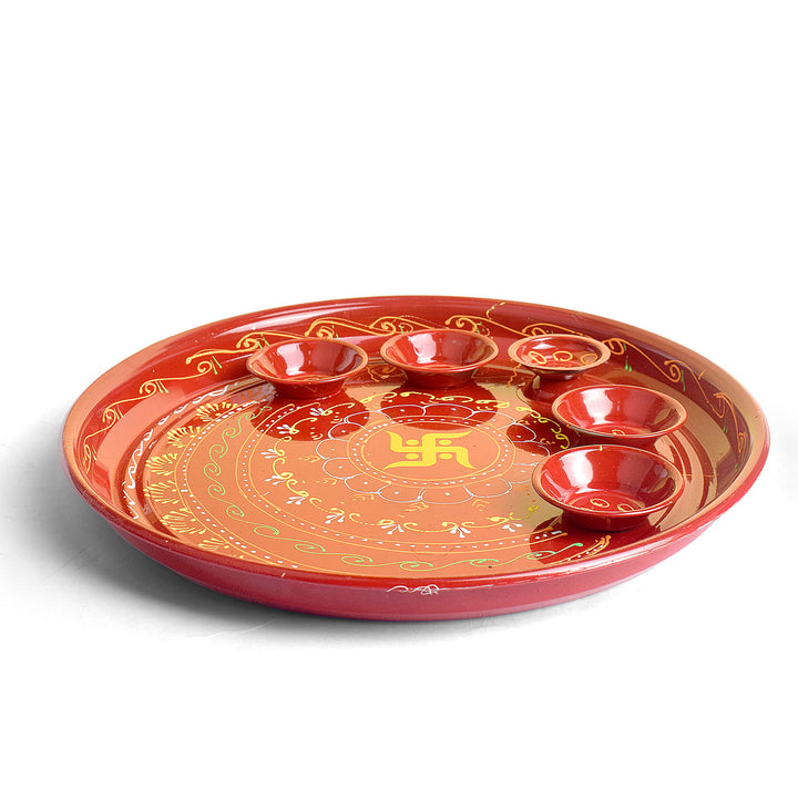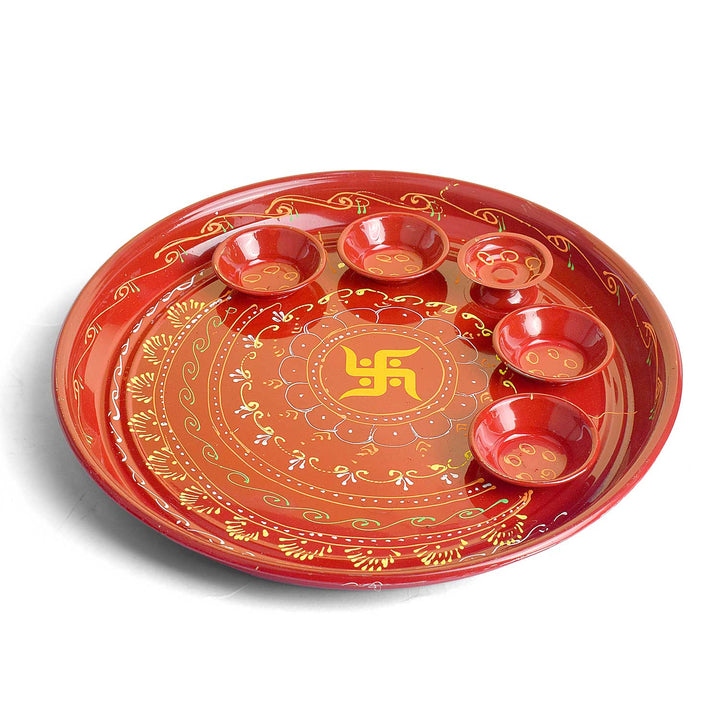 • Package Contains: 1 Pc Puja Thali Set (Thali, Incense Holder, Diya, Bowl)