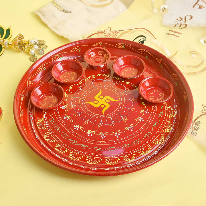 10 Inch Stainless Steel Aarti Thali Set (Swastik Design)