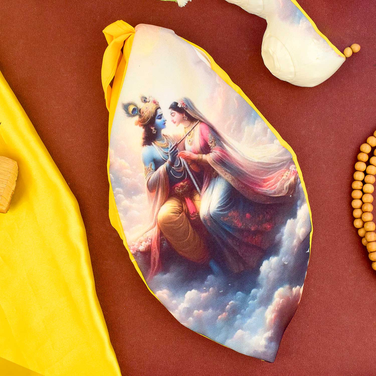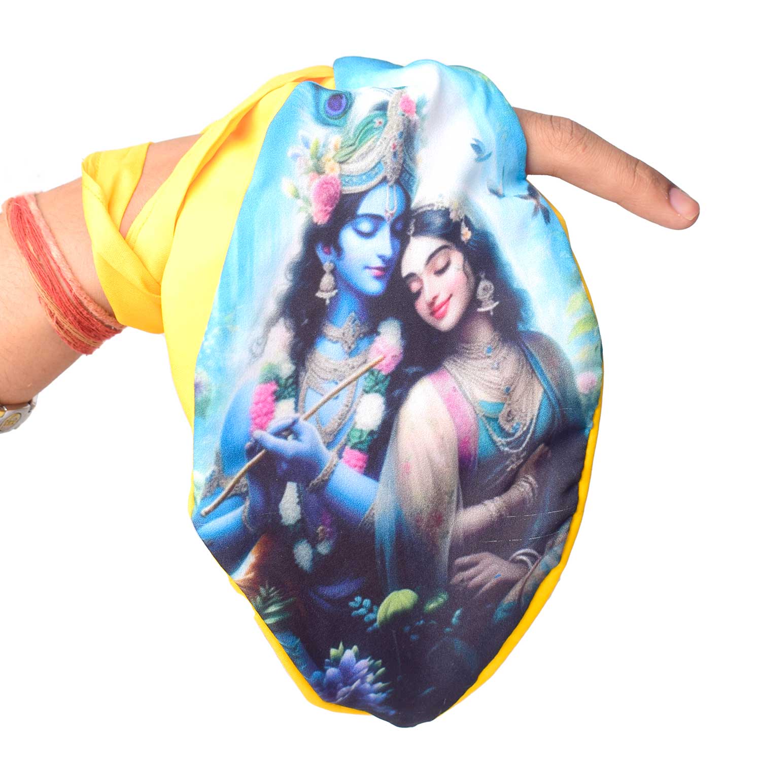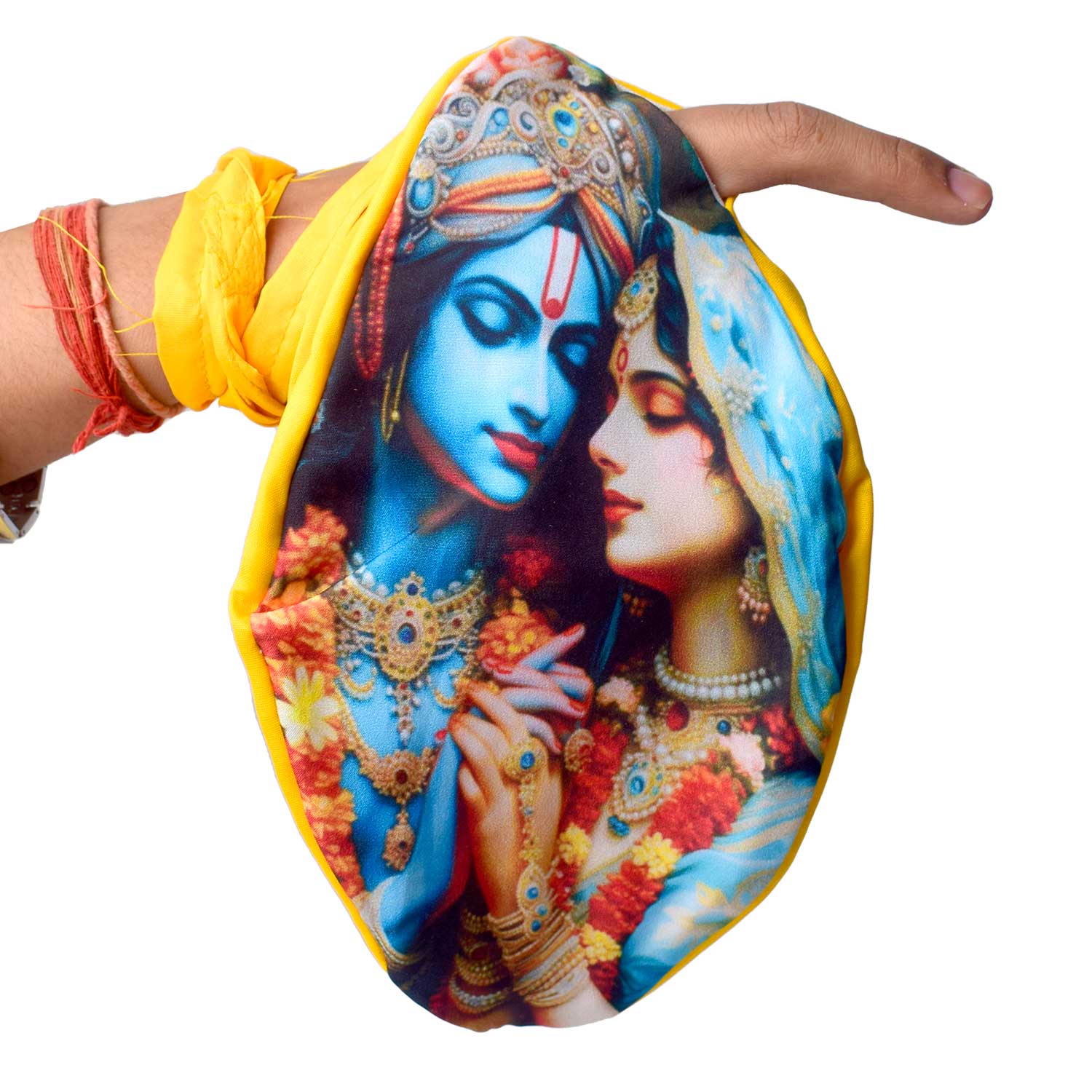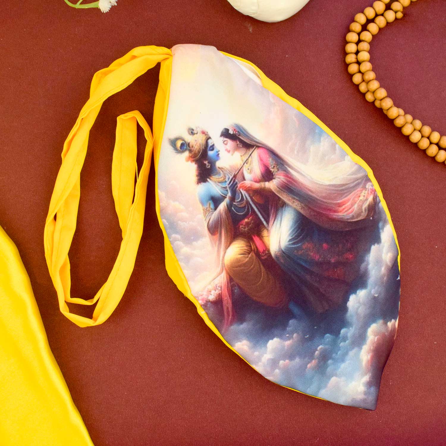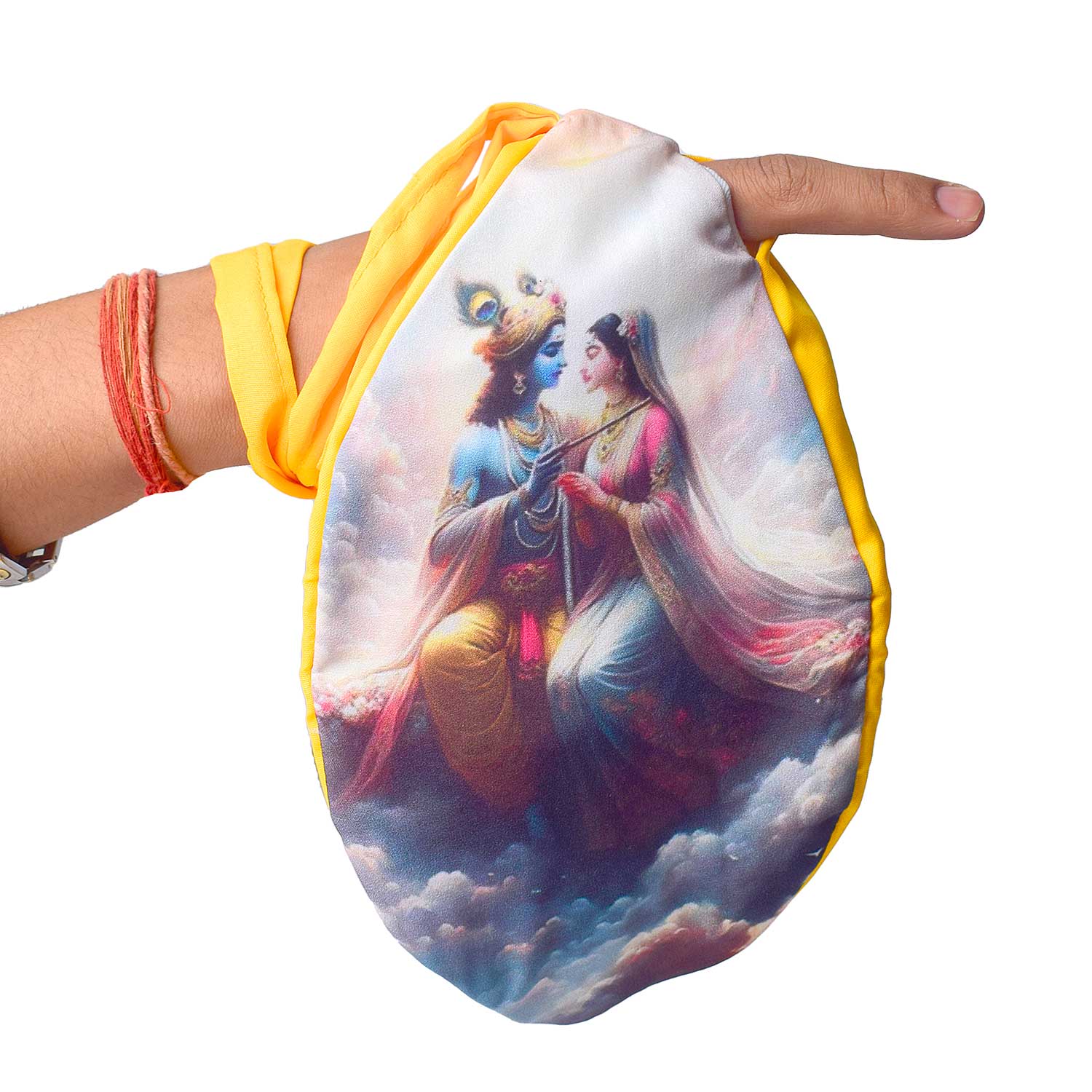 Item Name: 100% Cotton Radha Krishna Photo Jap Mala Jholi Bag (Assorted)