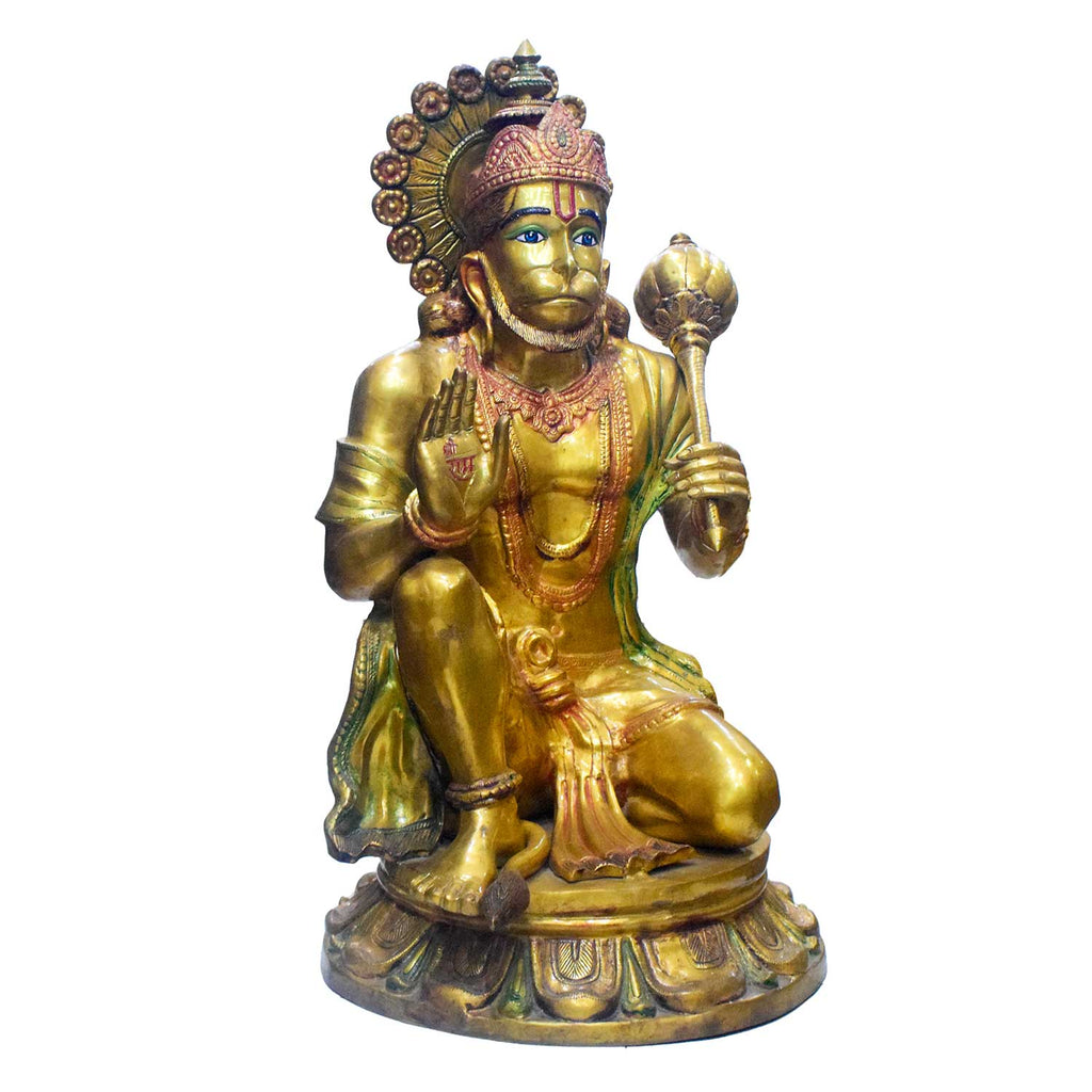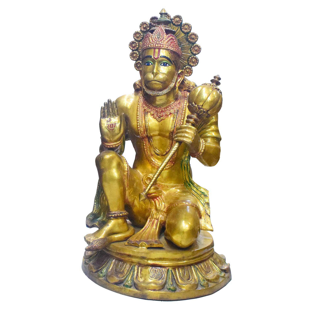 •  About the Product: 38 Inch Handcrafted Brass Seated Hanuman Statue