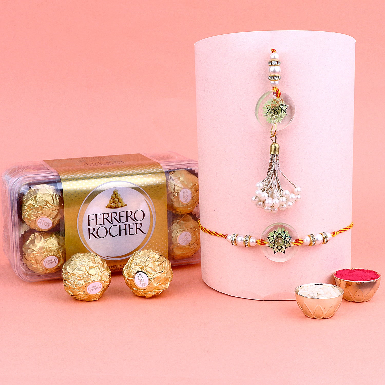 • Package: Set of 2 Bhaiya Rakhi, 1 Greeting card, 1 Roli Chawal Bottle, 1Β Chocolate Pack