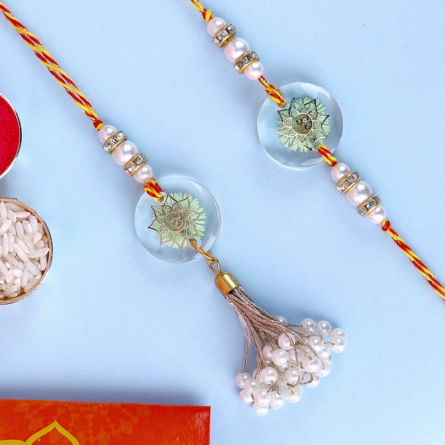 Beaded Bhaiya Rakhi Set of 2: Bedecked with colorful beads, these rakhis represent the joyous moments and cherished memories of growing up together. Embrace nostalgia and affection with this delightful beaded rakhi set.