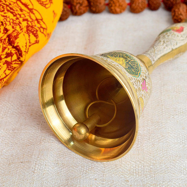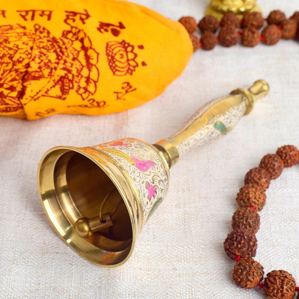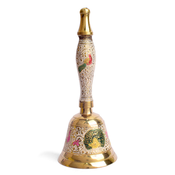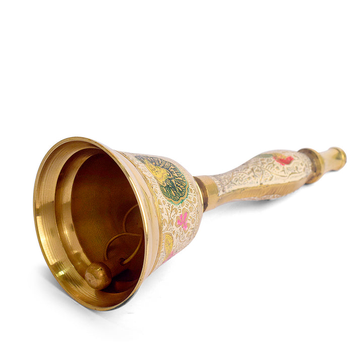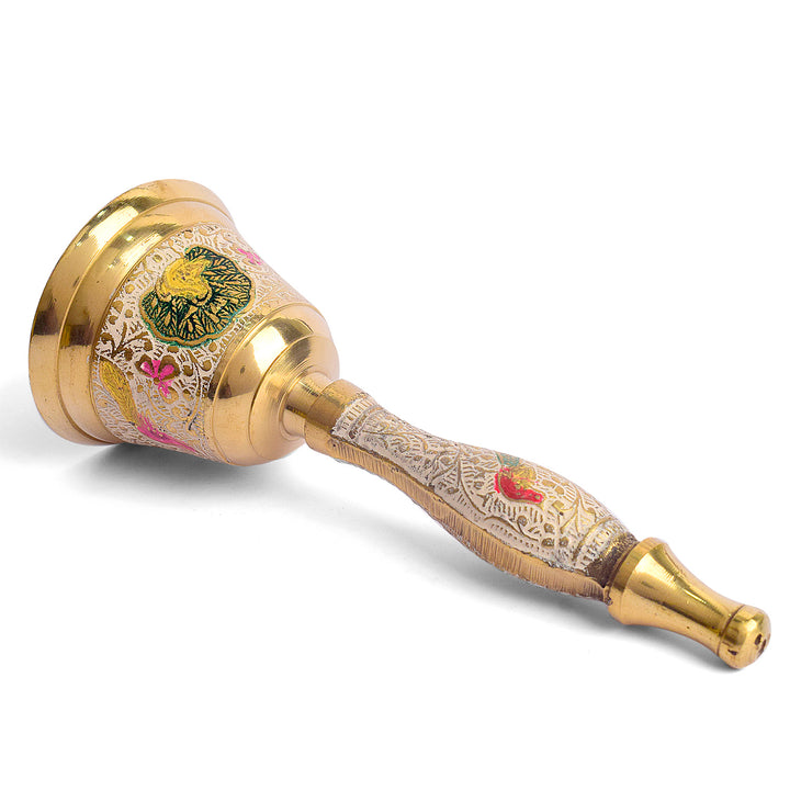 white brass puja bell | handcrafted pooja bell | traditional temple ghanti | brass prayer bell for home | Indian prayer bell | aarti brass bell | temple bell for rituals | handcrafted brass pooja items | Puja bell | Brass puja bell | Ghanti for temple | Hindu prayer bell | Aarti bell | Spiritual pooja bell | Temple bell | Ghanti for mandir | Brass aarti bell | Pooja ghanti online |