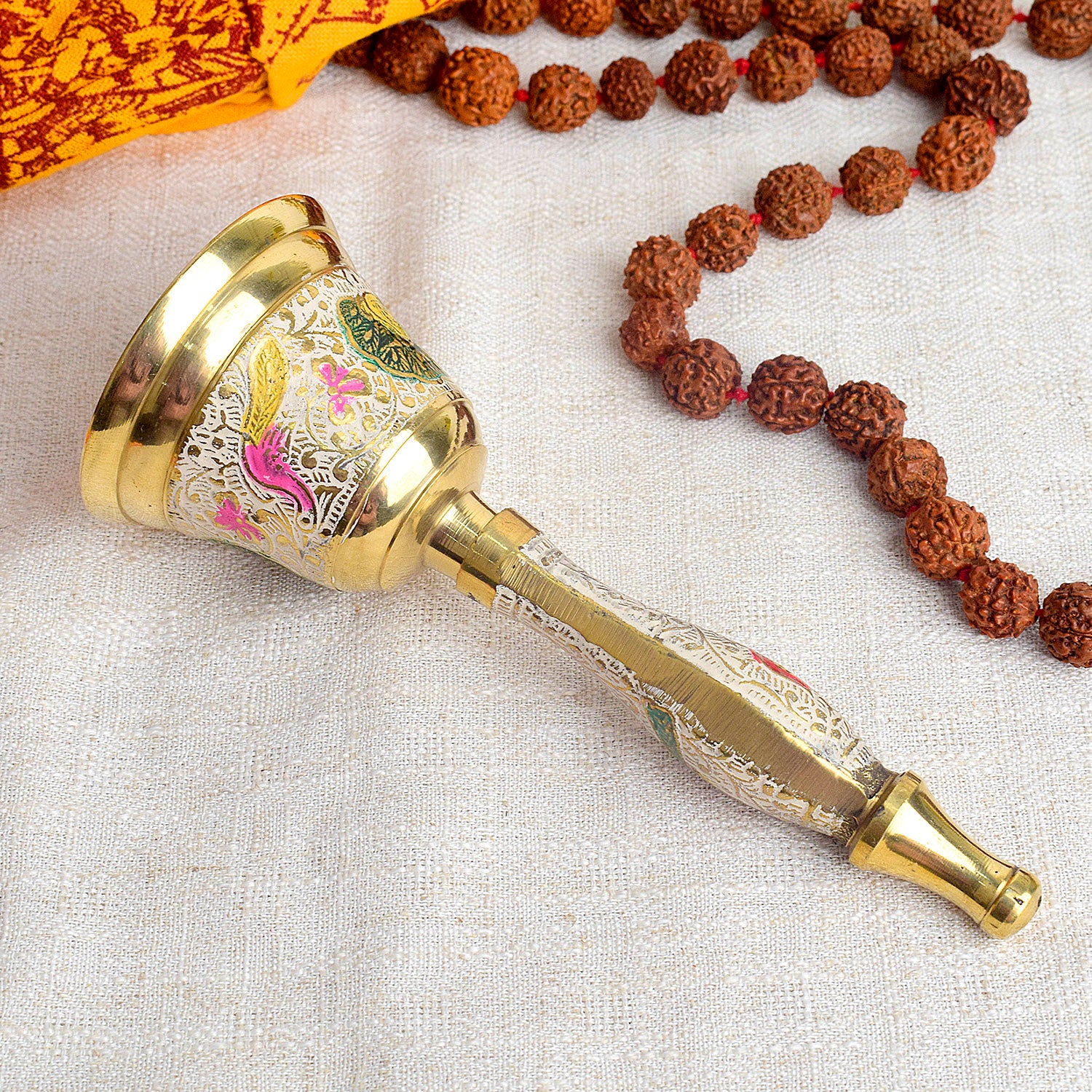 • About Product: Ringing bells are like a message to the whole world of a new day that starts with a visit to the temple/God making the start of the day- the best one. It is often called as Pooja bell or Ghanti. Handheld bells are held in the left hand and rung continuously while the various other Puja items are offered to God with the right hand. It is considered that the ringing bells ward off an evil spirit and is pleasant to God. Brass Pooja Bell is perfect to your home temple/aarti session and will have everyone mesmerized. The charming sound of this brass hand bell will reach out your prayers to the God and fill the atmosphere with divine sound and live music to the aarti during any Pooja/ceremony and also remove negative energy from your house/ office. Bring a shiny and beautifully crafted auspicious Pooja Bell Made up of Brass Material, Can Be Used for Worship At Home/Temple/Office, also an ideal gift for your loved one.
