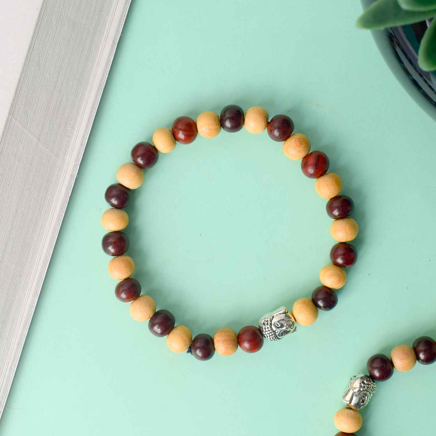 8 mm buddha sandalwood bracelet | red and white chandan bracelet | spiritual chandan bracelet | red sandalwood beads bracelet | white sandalwood bracelet | meditation energy bracelet | buddha red chandan bracelet | natural sandalwood beads | spiritual healing bracelet