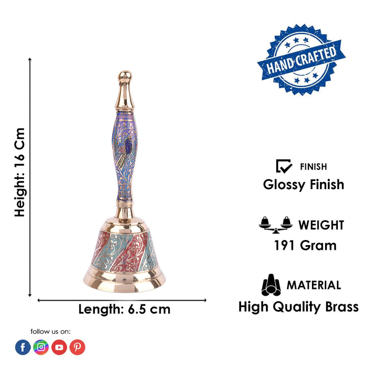 • Item Name: Handcrafted Brass Puja Bell (Skyblue & Red)