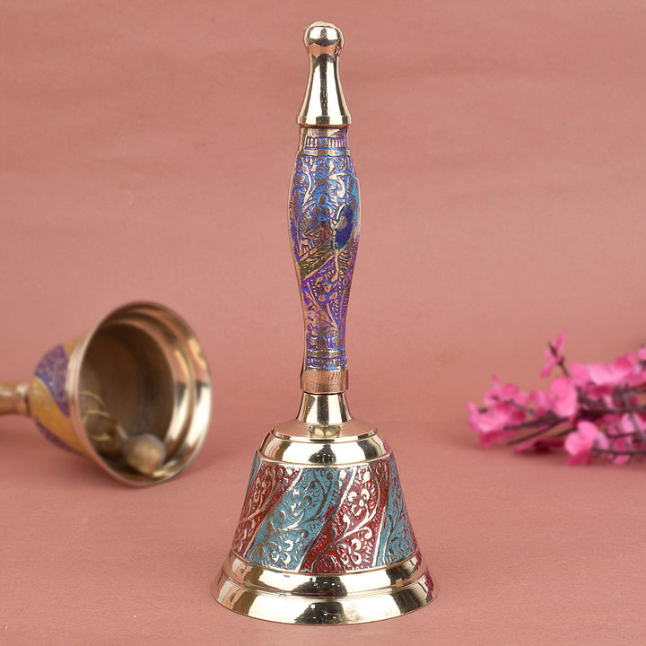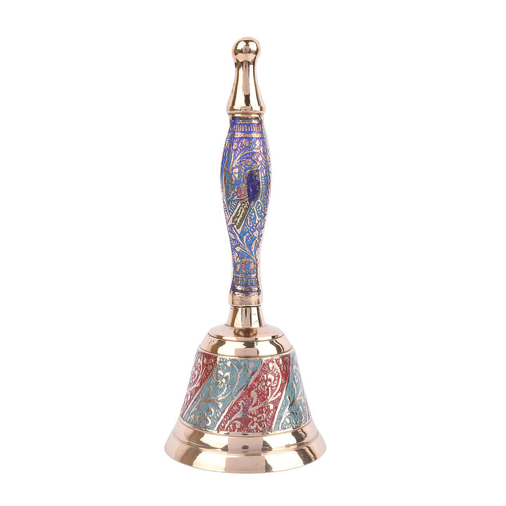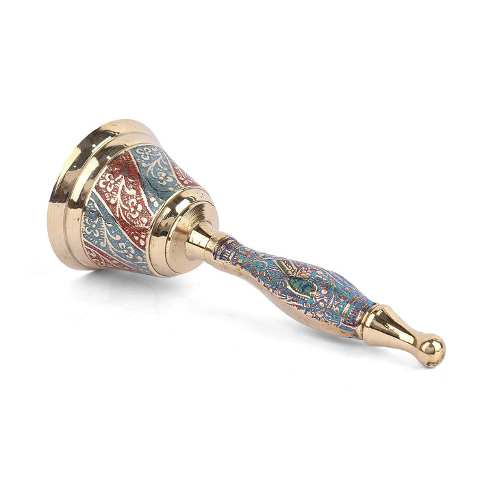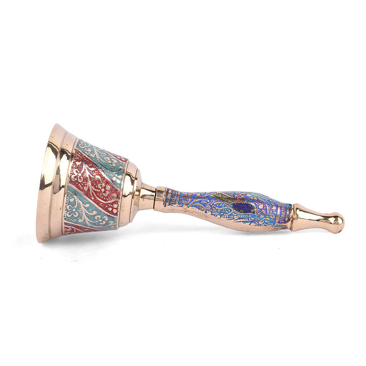 Handcrafted Brass Puja Bell (Skyblue & Red)