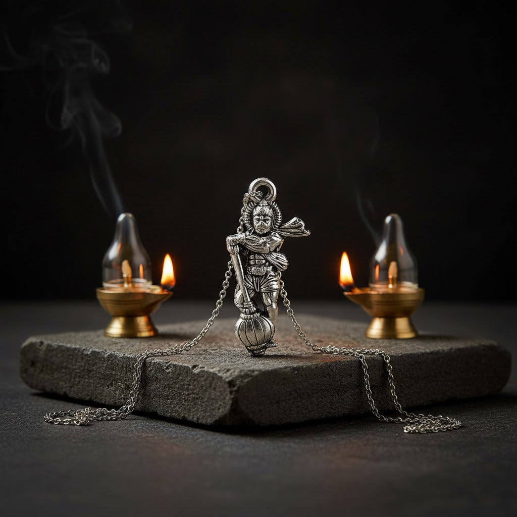 Hanuman Ji Pendant | Silver Plated Hanuman Pendant | Hanuman Gada Pendant | Devotional Jewelry | Spiritual Protection Pendant | Hanuman Pendant Online | Buy Hanuman Ji Pendant | Silver Plated Religious Pendant | Hanuman Talisman | Lord Hanuman Jewelry